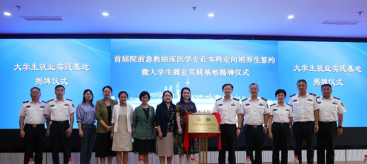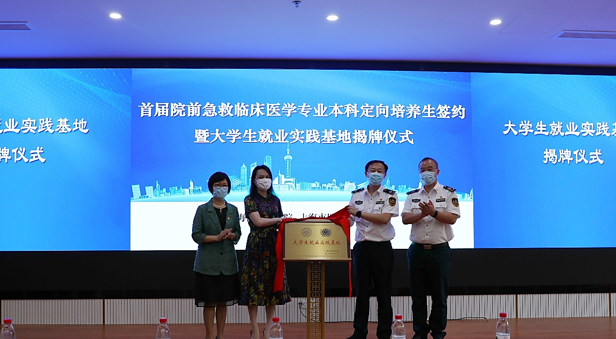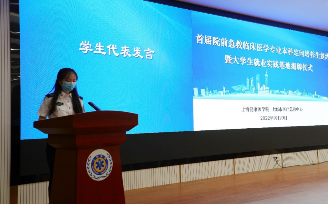 9 月29日,上海市医疗急救中心、太阳成tyc122cc联合举行首届院前急救临床医学专业本科定向培养生签约暨老员工就业实践基地揭牌仪式。上海市卫生健康委员会科教处石珩,太阳成tyc122cc学工部部长吕晓丽、太阳成tyc122cc经理蔡巧玲、太阳成tyc122cc党总支副书记罗瑾琰及班级辅导员,上海市医疗急救中心主任张志锋、党委书记吴晓东、副书记顾丽萍、副主任陆峰、钱文雄、解炯、袁明及人力资源部、科教部、急救部等相关负责人以及46名2022级院前急救定向培养员工参会。见证上海市院前急救人才培养新模式新征途启程。签约仪式由袁明副主任主持。