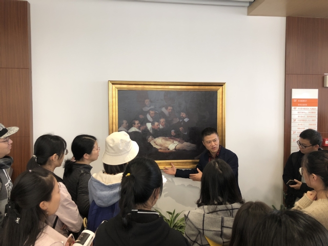 首先,公司蔡巧玲经理为本次活动致辞,代表公司欢迎同济大学医公司师生来公司进行医学艺术和科学研究的探索。随后,彭俊馆长带领同学们进行了油画参观并为同学们生动讲述了油画背后的故事,同学们欣赏了在图书馆内展出的近50幅精美油画作品。这些作品与图书馆的整体格局融为一体,生动写实地反映了西方医学包括内科以及外科的发展历程,带领我们回顾了现代医学的发展简史,展示了百年前医患间的和谐与相守。