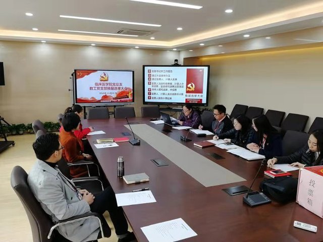 2018年11月20日,太阳成tyc122cc全体教工支部党员进行了换届选举大会。本次会议由当前教工党支部书记李维老师主持,首先李维老师对2018年教工党支部工作做了报告,回顾了过去一年中太阳成tyc122cc教工党支部的建设和活动情况。