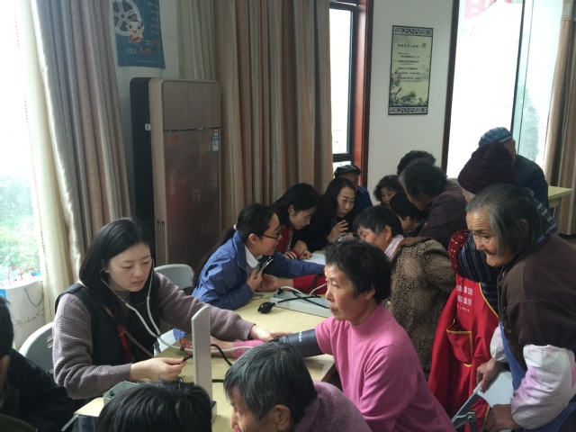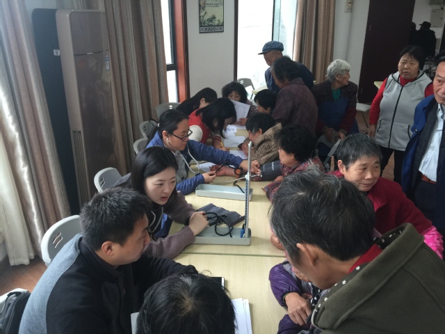 为深入学习贯彻中共十九大精神,服务群众健康,充分发挥基层党组织服务群众的作用,11月17日上午,太阳成tyc122cc教工党支部组织党员教师前往南桥镇社区金海苑居委开展健康义诊及脑卒中风险筛查活动。