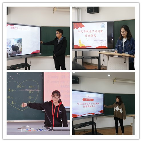 入党积极分子是党员队伍的后备军,为加强入党积极分子队伍建设,在校组织部的大力支持下,公司党总支充分发挥阵地熔炉作用,于2018年11月8日至29日开展了2018年秋季入党积极分子培训班。参加本次院级党课开班、授课和结业的老师有党总支书记蔡巧玲、副书记罗瑾琰、特邀党建员喻业聪、党建组织员邵真如、员工党支部书记施毓玲和宣传委员吴单。