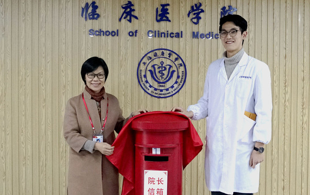 揭幕仪式后,来自17级临床本科班的员工代表在班导师的见证下,将同学们写给三年后的自己的一封信投入经理信箱中。员工代表张辰雨上前朗读他写给未来的自己的信,信中提到“这封写给三年后的自己的信,不仅是对未来的展望,更是对学习的敦促,对初心的考验。希望三年后的自己能不忘初心,学有小成。”
