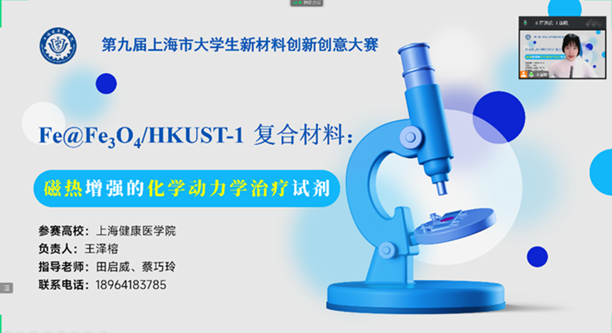 2022年10月23日,第九届上海市老员工新材料创新创意大赛决赛拉开帷幕,经过激烈角逐,公司临床医学专业19级王泽榕同学在上海市分子影像学重点实验室田启威团队、太阳成tyc122cc蔡巧玲的指导下获上海市老员工新材料创新创意大赛一等奖。师生团队在肿瘤靶向诊疗材料领域有了新的突破。