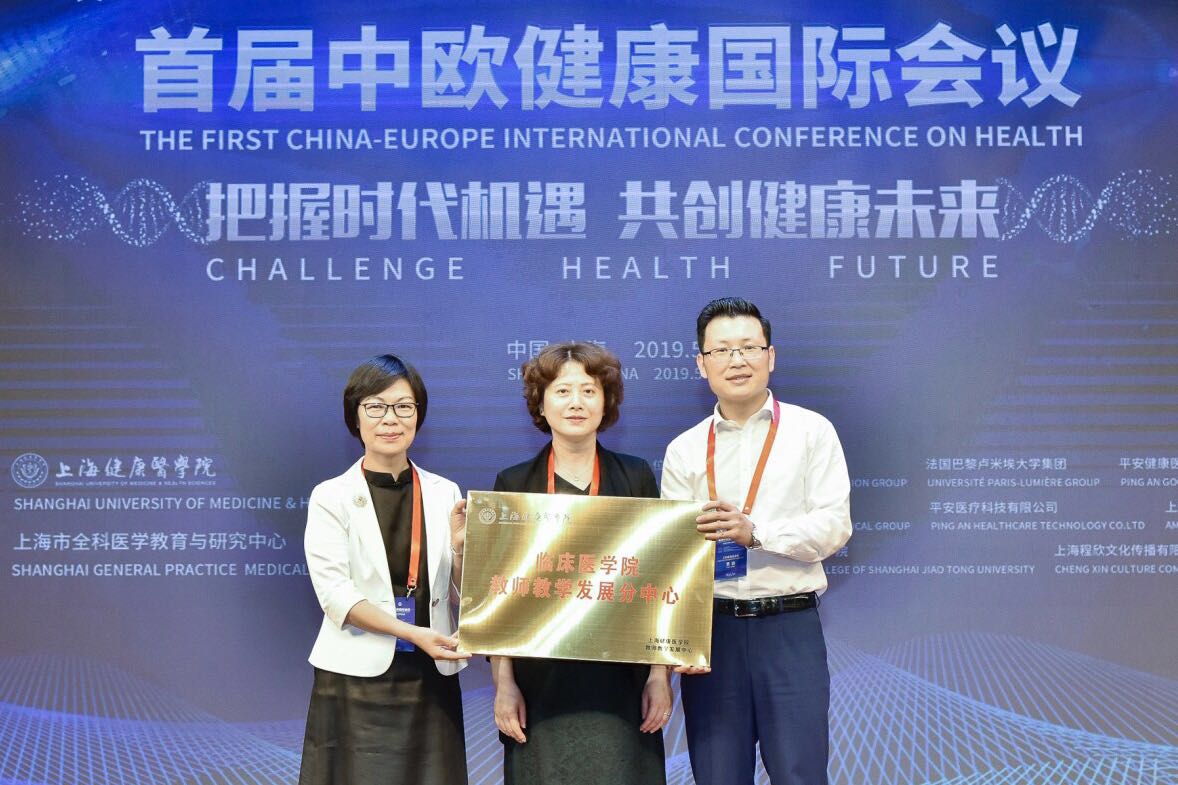 5月25日,首届中欧健康国际会议在公司举行,会上教务处张梅处长宣读了授予设立太阳成tyc122cc教师发展中心分中心的决定,唐红梅副董事长为太阳成tyc122cc教师发展中心分中心授牌,蔡巧玲经理和黄鹏副经理一同揭牌,公司全体教师在现场见证了这一重要时刻。