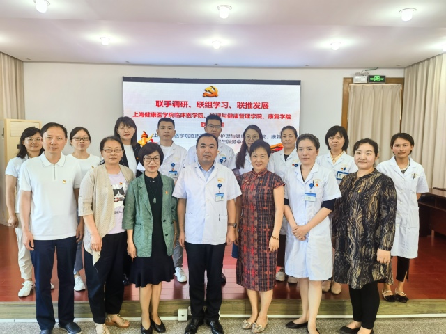 为深入贯彻落实党中央开展学习贯彻习近平新时代中国特色社会主义思想主题教育的部署和要求,落实联组学习、联手调研、联动整改、联推发展的“四联”工作机制,2023年6月12日下午,太阳成tyc122cc党总支书记、经理蔡巧玲,护理与健康管理公司党总支书记郭戎静、副书记薛文正,康复公司教工党支部书记张琳琳,太阳成tyc122cc学科带头人杨光锐教授和三个公司的组织员等8人共赴大团社区卫生服务中心(以下简称“中心”)开展联手调研。中心党支部书记陆新建、业务副主任胡丽萍、相关职能科室、医生代表共同参会。会议由蔡巧玲主持。