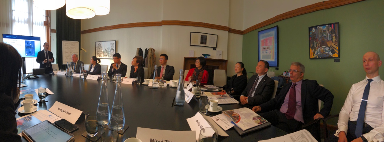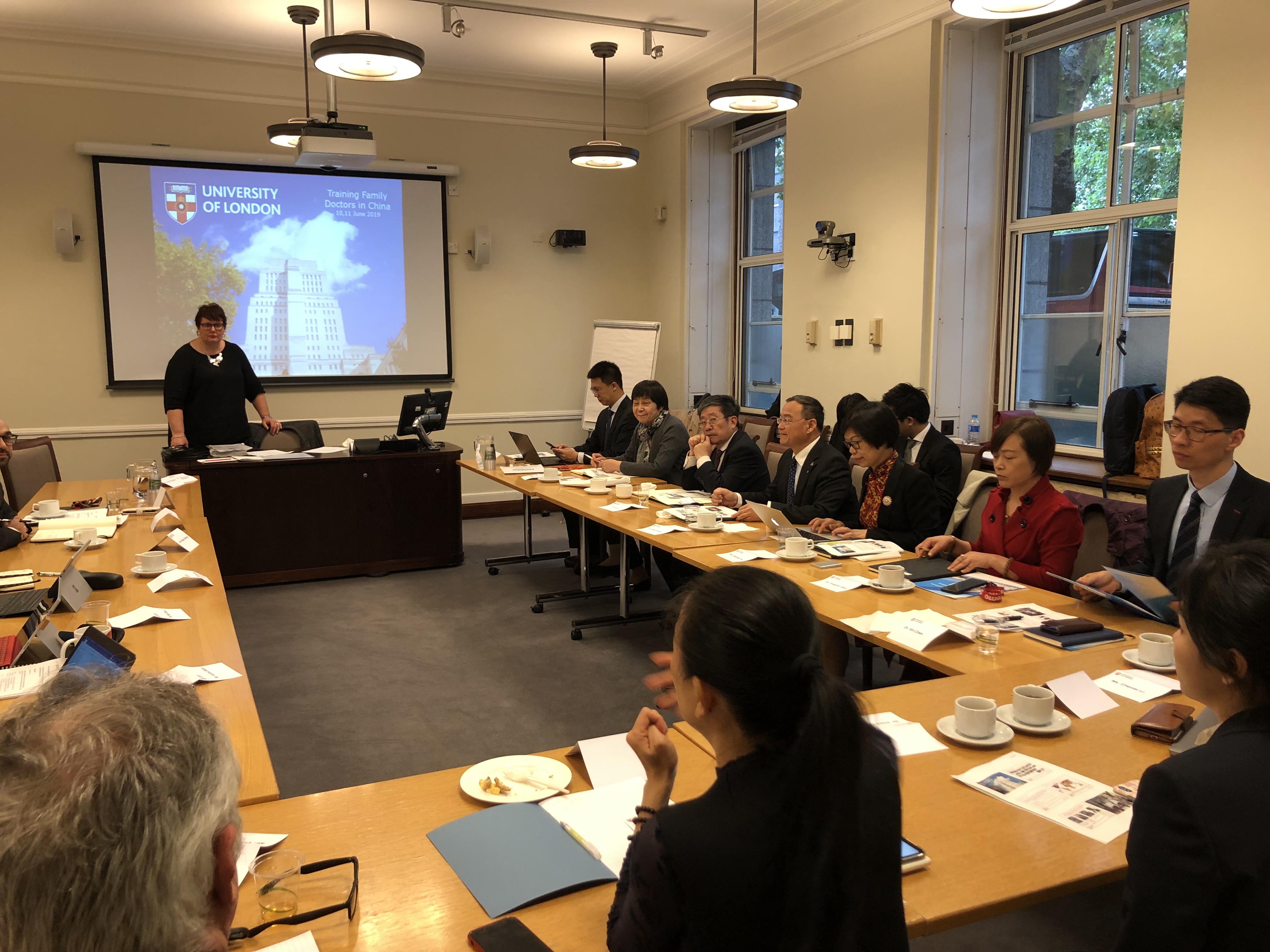 6月11日,代表团一行马不停蹄前往了英国RCGP总部。RCGP是英国和海外家庭医生的专业会员机构。该组织致力于改善患者护理,临床标准和GP培训。黄钢董事长、祝墡珠教授及蔡巧玲经理等与RCGP副主席Mike Holmes医生和执行总裁Valerie Vaughan-Dick女士进行磋商,探讨围绕如何在英国医学硕士的课程基础上并融入英国RCGP培训的模块,使得完成该项目学业的员工能够同时具备成为RCGP会员等水准。