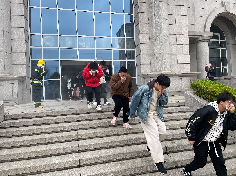 演练现场,工作人员模拟火情现场,楼层内设置“燃烧物”,模拟真实黑暗、浓烟、高温的环境。拉响消防警报,让师生“零距离”体验火灾逃生自救。模拟火灾发生后,工作人员第一时间组织师生有序疏散,维持疏散秩序,确保各安全出口畅通,引导员工快速有序地撤离到安全区域。整个撤离过程,师生用湿毛巾捂住口鼻,听从现场指挥,不互相推、拉,不争先恐后,有秩序地撤离,所有参加演练人员平安到达指定地点。