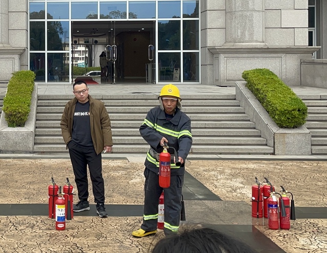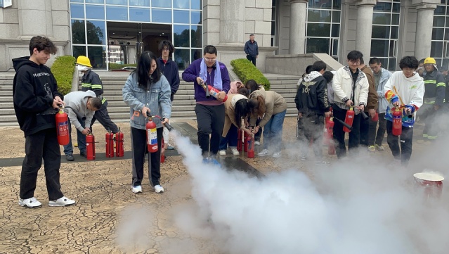 在灭火器操作演练环节,太阳成tyc122cc和保卫处组成的相关人员,首先向师生进行了消防知识科普,同学们在工作人员和消防队员的悉心指导下,实操体验灭火器的正确使用方法,并逐一进行灭火实操。学习过程中,大家认真学习技巧要领,踊跃参与问答互动,现场活动氛围热烈。