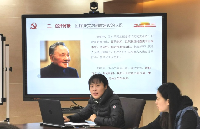 党的十九届四中全会是在以习近平同志为核心的党中央坚强领导下,贯彻落实党的十九大精神,坚持和完善中国特色社会主义制度、推进国家治理体系和治理能力现代化的一次重要会议。本次中心组学习由党总支宣传委员、党政综合办主任朱燕玲领学。她从会议概述、历史背景、会议重点、战略意义、心得体会五个方面解读了党的十九届四中全会内容,使在座的党员对中国特色社会主义制度和国家治理体系的显著优势、坚持和完善中国特色社会主义制度、推进国家治理体系和治理能力现代化的总体要求和总体目标有了更全面和详实的了解。