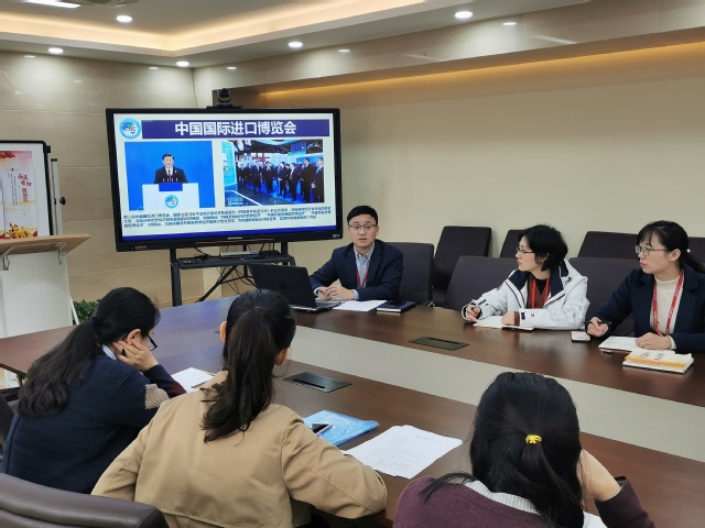 举办进博会是迄今为止世界上第一个以进口为主题的国家级展会,是国际贸易发展史上一大创举,是习近平总书记亲自谋划、亲自提出、亲自部署、亲自设计、亲自推动的。贺民副书记从进博会的背景及重大意义、回顾一年来的工作、经济全球化是历史潮流、宣布推进更高水平对外开放、结语五个方面,对习近平总书记在第二届中国国际进口博览会开幕式上的主旨演讲进行全面讲解,希望全体教职工牢记习近平总书记提出的关于共建开放合作、开放创新、开放共享的世界经济的三点倡议,深刻领悟关于推进更高水平开放的五点举措。