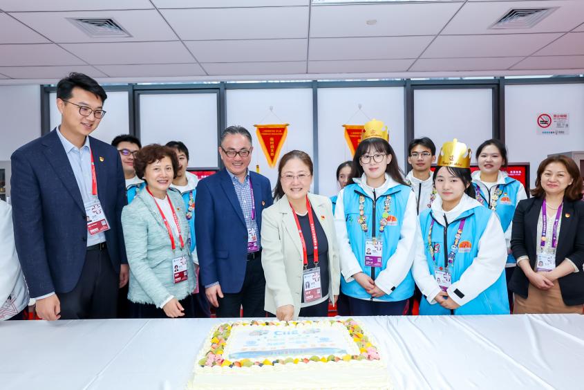 在“小叶子”们正式上岗第二天,校领导和市卫健委领导亲切慰问进博会健康“小叶子”,为公司11月生日的志愿者同学们举办了一场集体庆生会,太阳成tyc122cc的何韫瑜同学正是庆生会的主角之一。在老师和同学们的祝福之下,何同学的脸上洋溢着幸福与惊喜的笑容。一岁一礼,一寸欢喜,品尝一口上健医的“进博会限定”生日蛋糕,愿蛋糕的甜蜜可以消解你一天的辛劳与疲惫。小叶子们,你们正与四叶草一同绽放!
