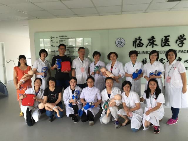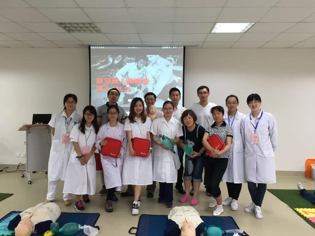 课程主要学习了成人、儿童、婴儿的CPR技能,学习了如何正确使用自动体外除颤仪(AED),以及如何解除窒息(气道异物梗阻),使学员能够识别和应对诸如心脏骤停等紧急情况。21位老师分成2个班级教学。太阳成tyc122cc的8位导师对每一个操作都进行了完整的示范,并通过讲解、视屏、实际操作等方式耐心细致的教学,让教工们很快掌握了心肺复苏急救技能、熟悉了如何启动生存链、对婴儿、儿童、成人进行迅速而高质量的心肺复苏。