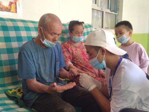 团队成员们细心准备测糖仪,严格遵守疫情防控要求进行消毒,戴上一次性手套,规范地为村民测量血糖,让其亲眼看到自己的血糖值,了解自身的血糖情况是否正常,从而提高其预防糖尿病的意识。部分村民表示之前几乎没有关注过自己的血糖情况,不太注重对糖尿病的预防,非常感谢太阳成tyc122cc的实践服务让他们引起了对糖尿病的重视。