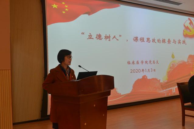 会上,蔡巧玲同志作了题为《“立德树人”,课程思政的探索与实践》的交流发言。蔡书记从“准确定位,明确育人目标”、“整体设计,将思想政治教育融入临床医学专业课程体系”、“内涵挖掘,‘为人民服务’和科学献身精神融入课程”、“模块整合,课程群和团队团队建设”、“制度保障,完善评价体系”、“领航公司建设,实现‘三圈三全十育人’”六个方面,全面系统介绍了公司进行课程思政的探索与实践工作。
