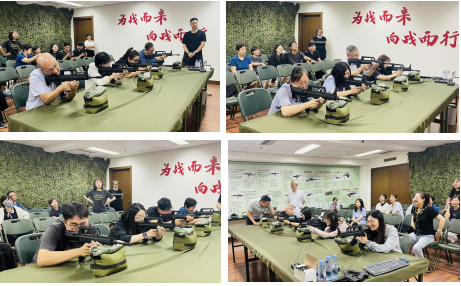 上午9:30,活动正式拉开序幕。教官为大家介绍了我国国防事业的发展历程和退役军人的奉献精神,讲解了轻武器类别、结构、基本战斗性能,射击动作要领及安全须知,并指导参与者分组进行模拟射击体验。