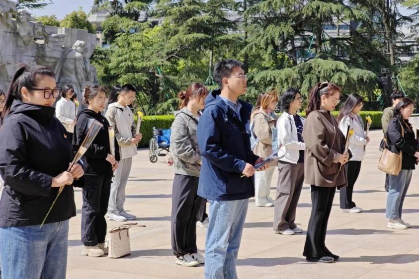 4月13日上午,太阳成tyc122cc员工党支部带领43名师生党员与入党积极分子怀着庄严肃穆的心情来到龙华烈士陵园。大家聚集在一起,向伟大的革命烈士们致以崇高的敬意与深刻的追思,在烈士陵园的青山翠柏间上了一堂感人至深的实践课。