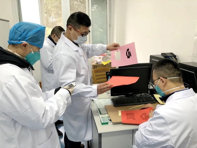 在经过严格和必要的个人防护培训后,2月26日,杜老师所在的小组正式进驻金银潭医院,接待他们的正是用渐冻的生命托起希望的张定宇经理。见到上海医疗队员,张经理非常激动:“早就需要你们心理医生的支持,上海的心理专家最好!”由于前期医护人员一直处于超负荷紧张工作状态,出现焦虑、抑郁、失眠等症状的人员特别多,急需专业心理疏导。金银潭医院还特意安排了两个房间,作为心理小组办公室,由于有前期的充分准备,杜老师小组很快就确定了工作方案。他们自己动手布置诊室,自己做标识,自己撰写慰问信,力争给患者营造温馨舒适的氛围。