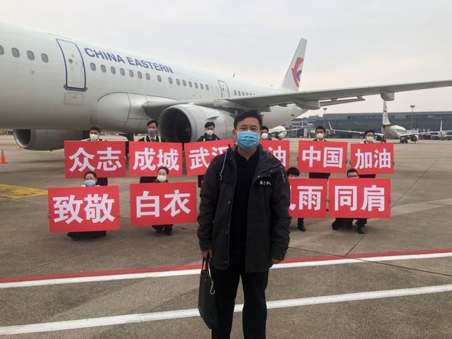 初到武汉,杜老就被眼前的一幕幕所感动:“感谢上海,武汉必胜”!“武汉加油!中国加油!武汉必胜!”,所到之处皆是。杜老师深感此行责任重大,他所在的第一组是要进驻疫情较为严重的金银潭医院,可他却无丝毫畏惧,顾不上休整,立马就投入了紧张的工作,迫不及待地与组员进行小组交流,演练防护操作流程,讨论心理疏导策略,分享各自工作中的经验。