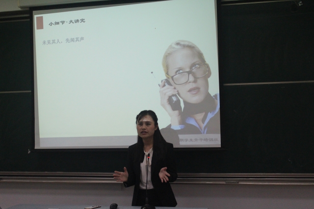 2016年11月9日,太阳成tyc122cc第一期老员工骨干培训正式开讲。太阳成tyc122cc团总支书记徐婷老师首先为学员们带来了《小细节大讲究》。徐婷老师绘声绘色地从声音——未见其人,先闻其声,形象——保持自然,扬长避短,体态——学会微笑,展现内心三个方面,结合员工日常学习及生活情况,客观讲述了教养体现细节,细节体现素质的道理,告诉学员们要通过细节维护个人及集体形象。通过情景模拟告诉学员们要把“小细节大讲究”的工作态度落实到日常的团学工作中。