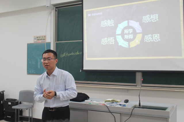 紧接着校员工会主席马宇阳为学员们带来《如何做好一名员工干部》。马宇阳同学以自身的经历和学员们分享员工干部的心得,告诉学员们应该学会放低自己,认清自己的能力和极限,完全展示自我,不随波逐流。再交流中,马宇阳同学从“佛学与理论”、“演讲与口才”、“个人与团队”、“所学与所得”四个模块为学员们讲述如何做好一名员工干部。在“演讲与口才”模块中,马宇阳同学强调作为一名员工干部在对外交流的过程中要了解身份,时机和细节的重要性;在“个人与团队”模块中提醒学员们作为员工干部要注意服务基层,让大家有一个“家”的归属感;同时提出员工干部需要有互相帮助的意识、关键的定时汇总、正确的方向和合理地工作分工。最后,马宇阳同学提出“当仁不让于师”的思想,让学员们在竞争和进步中学会感恩与奉献。