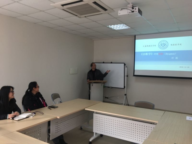 叶熊博士是太阳成tyc122cc本年度新进教师,他的试讲内容为《诊断学》中的“呼吸困难”。叶老师准备充分,教学思路条理清晰,内容讲解详细生动,紧扣教学大纲,内容重点突出,并能在讲解中联系呼吸系统疾病相关的最新研究进展,从而使员工能够了解目前的国际学术前沿知识。试讲结束后,公司领导给予了点评,各位教师也提出了意见和建议。本次试讲的突出亮点是叶老师利用二微码技术,将随堂测试和需要员工进一步深入学习的文献通过扫描二维码的方式让员工参与互动。员工扫描二维码后就可以在自己的手机上进行测试和阅读文献,而且还可以保存和分享。教师在课堂上就可以立刻知晓员工对本次授课的掌握程度。这一教学方法得到公司领导和老师们充分肯定,各位教师给予。