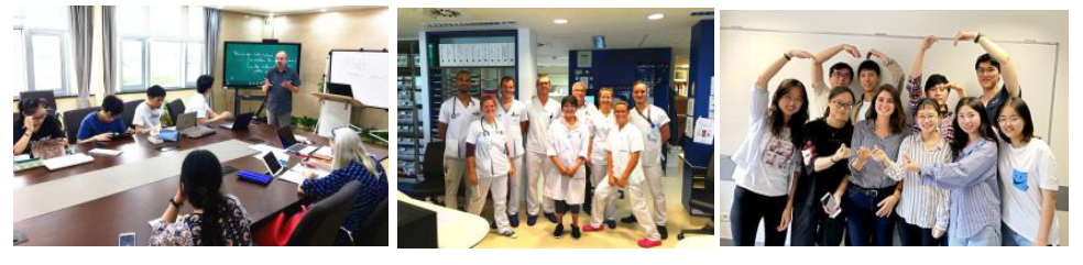 积极引进国外优质医学教育资源,持续加强与世界知名医公司校合作,不断拓展员工国际化视野。与比利时列日大学、英国伦敦大学公司、英国皇家全科医师公司、法国斯特拉斯堡大学开展密切合作,形成“中-比医学科学硕士项目”、“英国全科医学团队培训项目”、“全科医师综合能力提升海外培养计划项目”等品牌合作项目。首届5名员工已在比利时列日大学顺利完成医学科学硕士全部课程及答辩,获得列日大学医学硕士学位。另外,与法国格勒诺布尔大学、比利时鲁汶大学、法国巴黎大学、芬兰萨沃尼亚大学等院校开展海外游学项目,员工在校期间拥有丰富的国际交流机会,首届本科生海外游学比例高达50%以上。