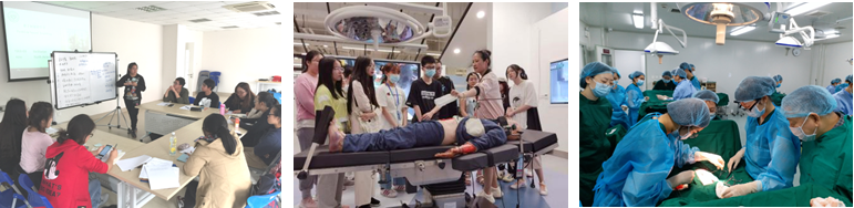 临床医学专业临床教学工作,主要由一批以三级医院为主体的临床教学基地承担,有内科学、外科学、妇产科学、儿科学、全科医学科、急救学科等十余个住院医师规范化培训基地。贯彻落实“医教协同”,公司以“公司-医院-社区联盟”全科医学教育基地的模式建设社区教学基地。已有20余家社区教学基地提供临床医学本科专业员工进行早期社区实践教学。依托上海市综合性三甲医院学科优势,与中山医院、新华医院、仁济医院等联合开展“健康-中山全科班”“上健医-新华班”“健康-仁济班”,构建“5+3”一体化的临床医学专业人才培养体系,员工有机会在上海市顶级医院进行临床学习。