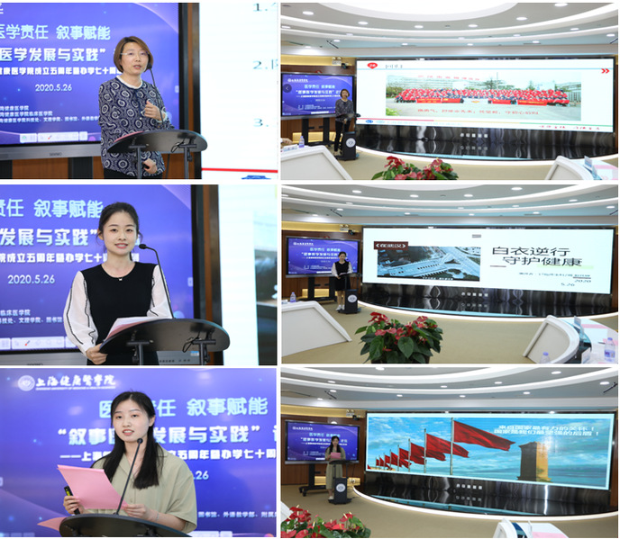 在师生交流环节,来自上海第一批援鄂医疗队员、附属周浦医院“最美逆行者”李晓宁医生,为我们讲述了在武汉抗疫一线67天的感人故事,让大家深刻体会到了战“疫”的惊心动魄,更加坚定了战胜疫情的信心与决心。临床医学专业医员工赵佳琳和姚星贝深情讲述了《白衣逆行守护健康》、《最有力的关怀》的叙事医学故事,分享了自己的学习体会和收获,感受到了她们身上萌发的医学职业精神。