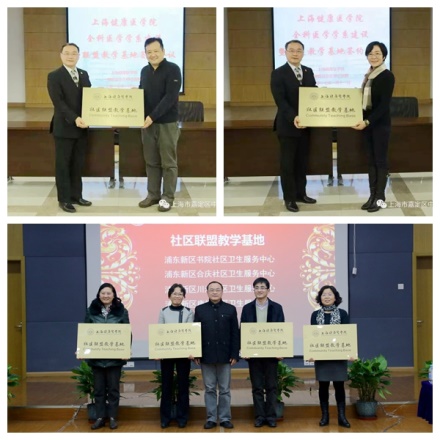 为对接国家分级诊疗战略,使公司培养的应用型医学人才在“早临床、多临床、反复临床”的见实习过程中接触到更多的常见病、多发病、慢性病,为将来服务上海基层卫生打好基础,近日,公司启动了社区联盟教学基地建设工作。马陆、嘉定、合庆、书院、川沙以及康桥6家社区卫生中心成为首批联盟成员,挂牌成为公司社区联盟教学基地。黄钢董事长,唐红梅副董事长,嘉定区卫计委、浦东新区卫计委相关领导,蔡巧玲经理、教务处以及相关附属医院负责人共同见证了联盟签约和授牌仪式。