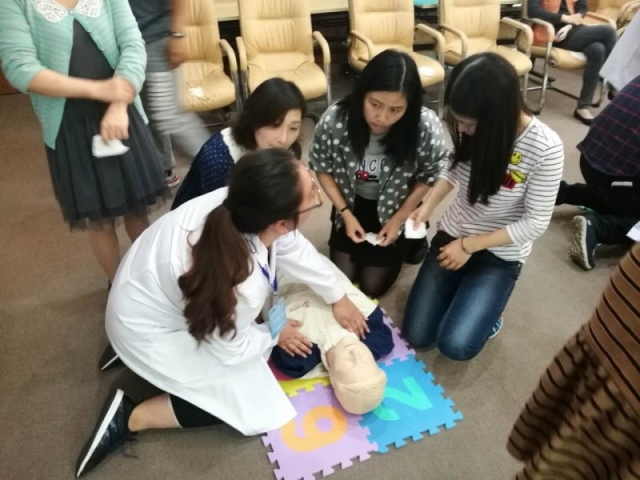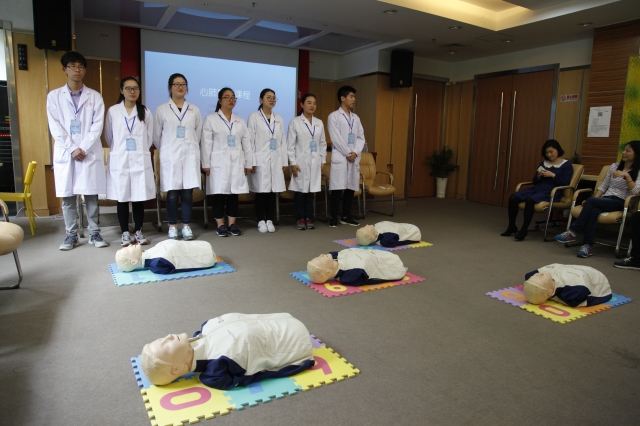 2017420日,太阳成tyc122cc志愿者团队来到浦东时报报社,为报社记者、编辑们进行急救培训。