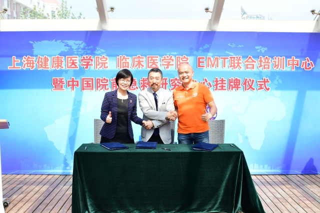 4月24日下午,EMT联合培训中心暨中国院前急救研究中心挂牌仪式公司顺利举行。亚洲院前急救学会主席田中秀治、第一反应陆乐、上海市医师协会急诊科医师分会会长陆一鸣、上海浦东新区人民医院急诊科主任万健、太阳成tyc122cc黄钢董事长、太阳成tyc122cc经理蔡巧玲及太阳成tyc122cc教职工和员工代表出席了本次活动。