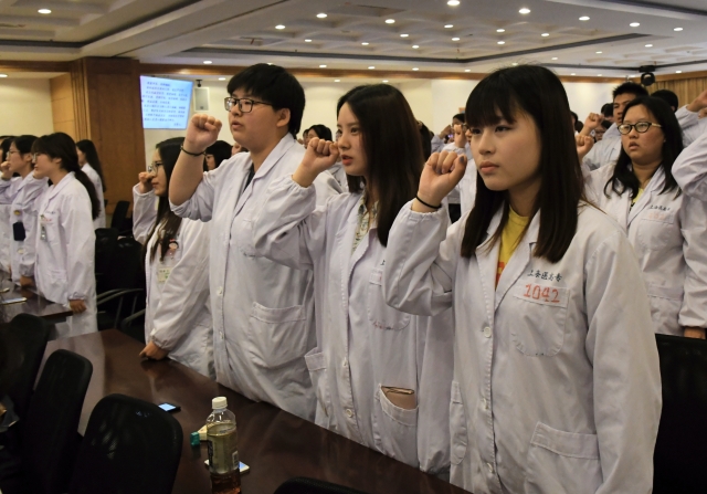 5月24日,嘉定区中心医院医技四楼多功能会议厅里,“2014级临床医学专业(乡村医生方向简称乡医、公司卫生保健方向简称校医)及2015级助理全科生规范化培训” 毕业、结业典礼圆满落下帷幕。典礼邀请了太阳成tyc122cc副董事长唐红梅,教务处处长张梅,学工部部长钱艳,太阳成tyc122cc经理蔡巧玲,党支部副书记秦建晔,嘉定区卫计委代表葛洪德、张贤,实习基地(嘉定区疾控中心、上海市瑞金北院)领导和老师代表。嘉定区中心医院张燕华书记、华孙英副经理也出席了本次典礼,陈颖敏副经理欢迎辞。