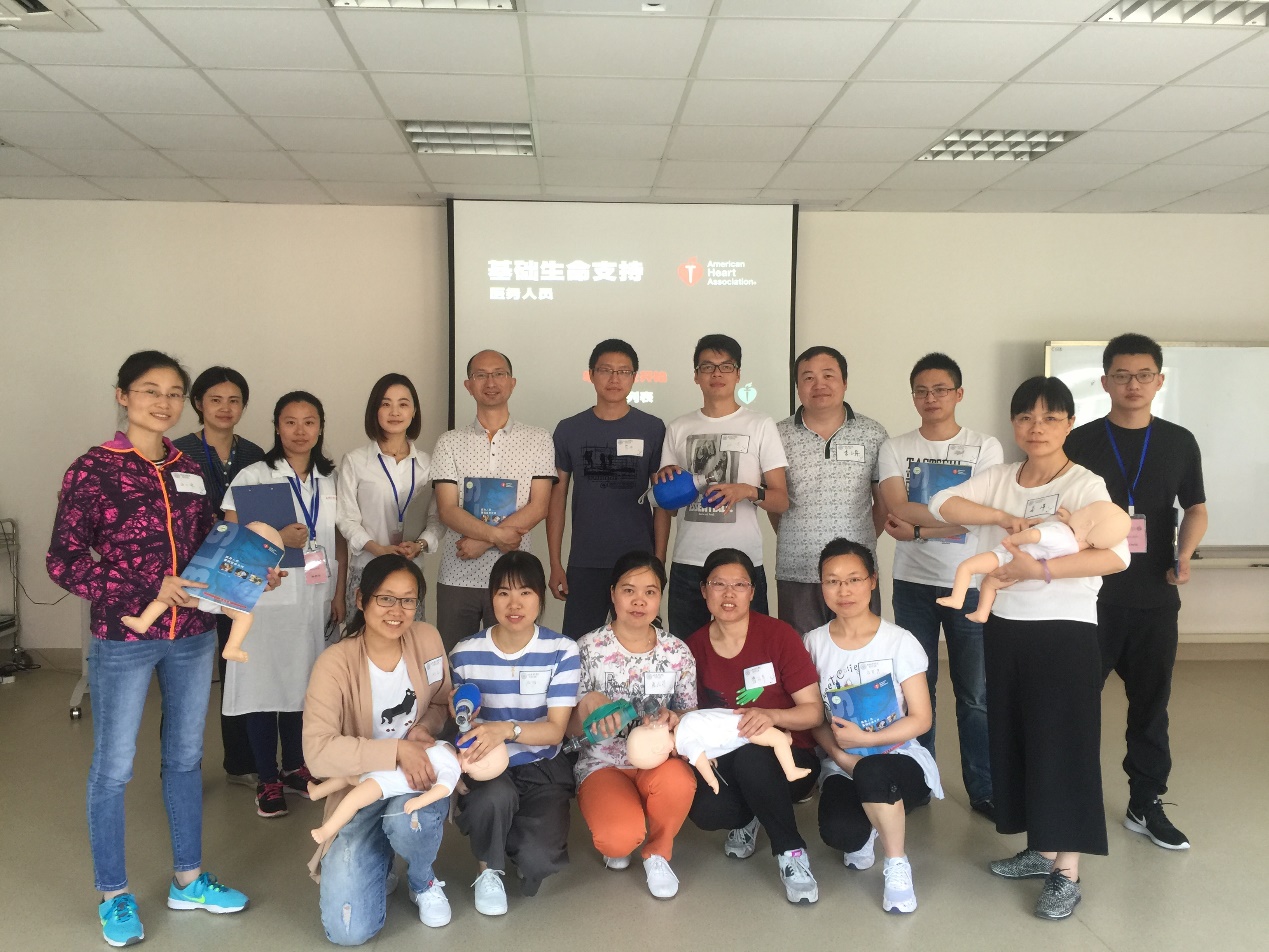 此次培训共发展主任导师2名,导师6名,培训学员50名,合格者颁发AHA认证的证书。其中,2名主任导师的成功认证意味着公司AHA培训中心今后具有独立承担培训和督导BLS导师的资格。6名导师中,有2人来自于附属医院的一线工作者;50名学员中,12名学员从公司附属医院招募而来,3名学员来自于我们公司的支部共建伙伴---大团社区卫生服务中心,37名学员来自于公司14级院前急救专业的员工。此次培训为期4天,分5个培训场次。至此,公司AHA培训中心已发展附属医院BLS导师12人,在此过程中,不进壮大了导师团队,同时也加强了公司与附属医院之间在教学与团队培训方面的联系和沟通。