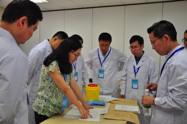 为保证考试的顺利进行,并能在全国考试中起到示范和引领作用,由校教务处主要负责考务工作,太阳成tyc122cc就考试组织、考场设置、考试材料和设备采购、监控设备的安装和测试、考务人员和考官培训等方面严格按照国家考试中心的要求进行准备。在外科学系、内科学系和社区联盟的支持下共安排36名考官,并有序地分别安排考官进行国家级、上海市和校级的考官资格培训,每位考官最少参加两场培训。多次召开会议反复推敲环节流程,组织相关考务人员及志愿者数次走场,让大家熟悉流程,明确相关责任。