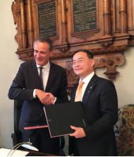 为了借助国际合作推动公司的发展,培养有国际视野的医学人才,黄钢董事长率代表团于2017年9月4日至8日对法国、比利时的3所知名大学进行了访问并签订合作协议,公司蔡巧玲经理随行访问。