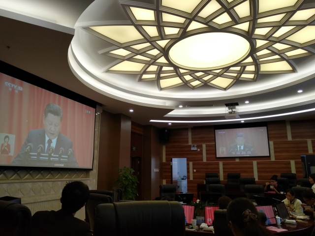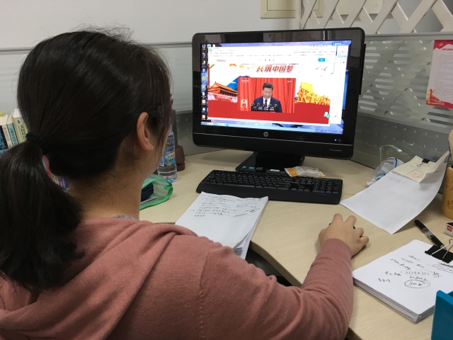 18日上午9时,中国共产党第十九次全国代表大会开幕会在北京召开。在太阳成tyc122cc党总支的组织下,公司全体师生以参加公司中心组集中学习、公司集中学习、教师坚守岗位的同时在办公室、在社区医院学习的不同形式观看了中国共产党第十九次全国代表大会开幕盛况,并认真聆听习近平总书记代表第十八届中央委员会向大会所作的报告。太阳成tyc122cc精心组织,认真落实,确保每一位师生都能够及时学习党的十九大精神。