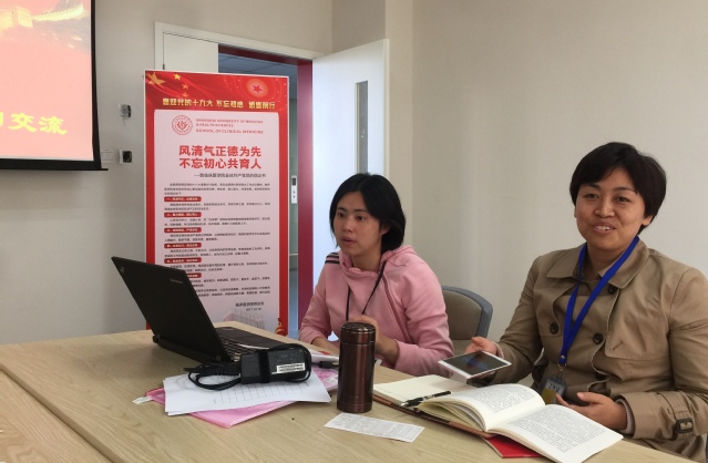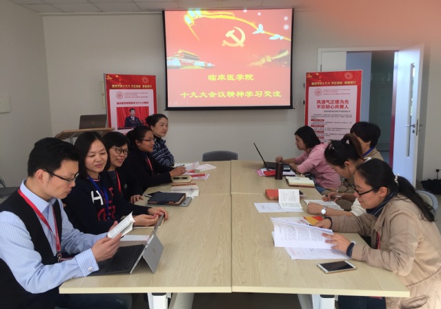 2017年11月9日下午太阳成tyc122cc支部在7号楼204教室组织全体党员及公司骨干教师集体学习党的十九大报告。蔡巧玲书记主持了学习交流大会。李维老师首先系统的向大家介绍了十九大精神,凝练了党的十九大对对前五年的总结、最重要的贡献、主题、内涵的“八个明确”、基本方略“十四个坚持”、“两个一百年”及重大意义等发言的内容。其中关于“实施健康中国战略”的国家部署,太阳成tyc122cc在专业人才培养方案中,将体现全科医学教育特色更深入的落实和推进。各位党员和骨干教师认真学习,并做好笔记。