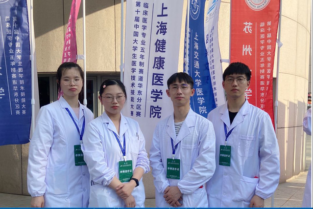 临床医学专业五年制赛道华东分区赛由安徽医科大学承办,共有来自华东地区46所开设临床医学五年制专业的高校参赛,强手如林,竞争异常激烈。公司临床医学专业2016级四名正在第六人民医院临港院区实习的员工代表公司出征华东地区分区赛。作为首次参加该项赛事,同学们与各兄弟高校同台竞技,沉着应对,稳定发挥,顺畅地完成各项赛道考核内容,展示了健康学子的风采。