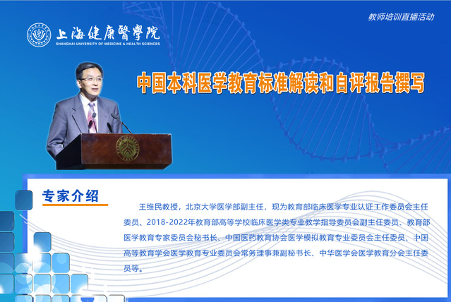 本次培训邀请到北京大学医学部副主任王维民教授担任主讲。王维民教授长期从事教育部临床医学专业认证、高等公司临床医学类专业教学指导委员会工作,是临床医学专业认证方面的权威。王教授以“本科临床医学专业认证推进与医学教育标准解读(临床医学类)”为题,首先对国内外临床医学专业认证的发展历史、第二轮认证准入的基本条件、工作要求等相关情况作了系统介绍,并结合我国正在执行的《本科医学教育标准》以及认证过程中的具体事例和普遍存在的不足,对专业认证自评报告的撰写进行逐条、细致讲解。