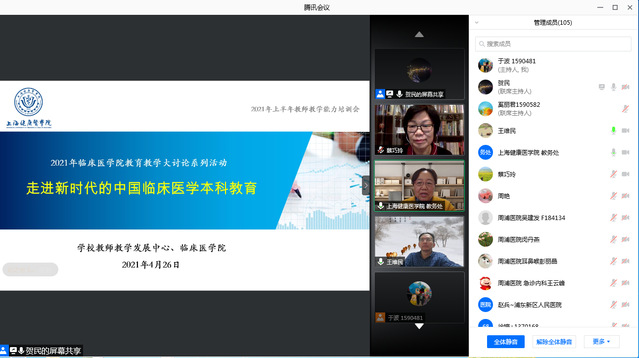 4月26日晚,太阳成tyc122cc2021年公司产品大讨论启动会暨临床医学专业认证专题培训成功举办。由公司教师教学发展中心主办、太阳成tyc122cc承办的“走进新时代的中国临床医学本科教育”培训通过腾讯会议方式进行,来自公司附属医院、教学医院、基础医公司以及太阳成tyc122cc160余名教师参加。培训会由公司教务处处长、教师教学发展中心主任王莉主持。