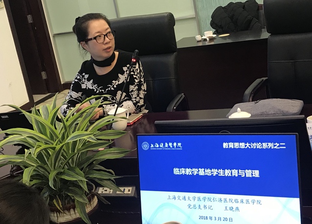 王晓燕老师首先介绍了仁济太阳成tyc122cc员工情况、教学管理工作框架。然后强调员工工作不能单纯求稳定,应全方位进行思政育人。同时还分享了仁济太阳成tyc122cc的思政网络体系和丰富的党团活动,职业规划教育,导师活动,心理顾问计划等活动。公司辅导员们纷纷表示受益匪浅,打开了员工工作的思路,对于太阳成tyc122cc和附属医院相关员工工作开展具有非常深远的指导意义。