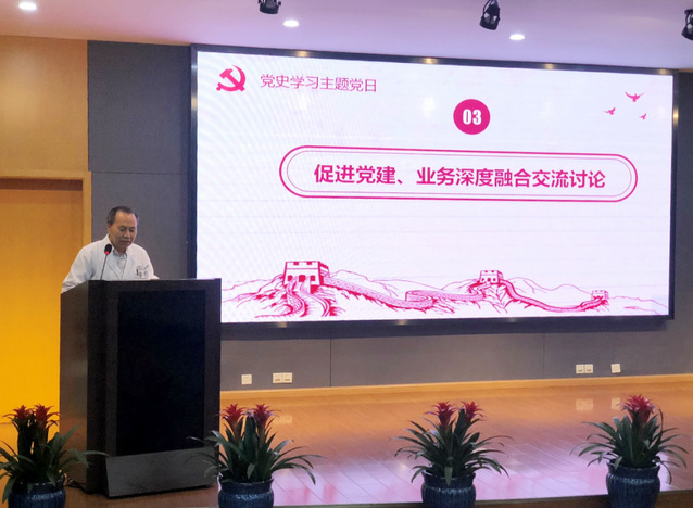 周浦医院内科一党支部书记张进安同志代表支部感谢共建支部上健医临床公司一支部一直以来的支持和合作,并欢迎临床公司二支部党员代表的莅临指导。张进安强调,一定要充分认识到学习党史的重要性、必要性,要学得扎实、学出成效,把党史学习教育的成果融入到临床工作中,更好地为群众服务。