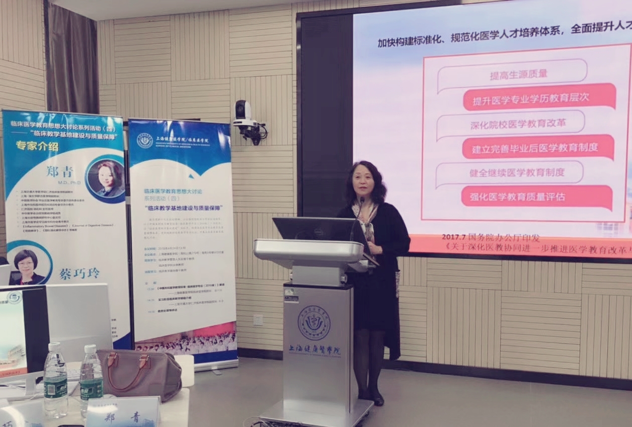 为进一步推进公司产品改革,贯彻落实《关于深化医教协同进一步推进医学教育改革与发展意见》〔2017〕63号文的精神,全面提高临床教学基地的教育质量,4月24日下午,公司在南苑W205举行了以“临床教学基地建设与质量保障”为主题的教育思想研讨会。会议特邀上海交通大学医公司仁济太阳成tyc122cc郑青副经理和公司蔡巧玲经理进行了专题报告。附属医院和临床教学基地教学负责人和教研室教学骨干、太阳成tyc122cc全体教师50余人出席了此次研讨会,会议由黄鹏副经理主持。