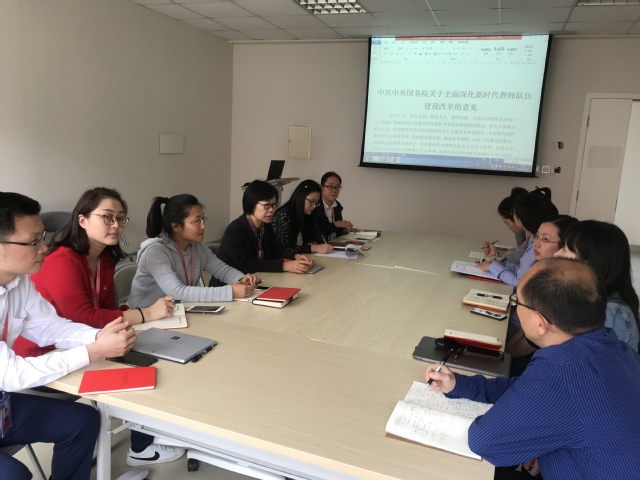 首先由教工党支部书记李维老师对文件进行针对性导读,出台《意见》,是以习近平同志为核心的党中央高瞻远瞩、审时度势,立足新时代作出的重大战略决策,将教育和教师工作提到了前所未有的政治高度,对于建设教育强国、决胜全面建成小康社会、夺取中国特色社会主义伟大胜利、实现中华民族伟大复兴的中国梦,具有十分重要的意义。