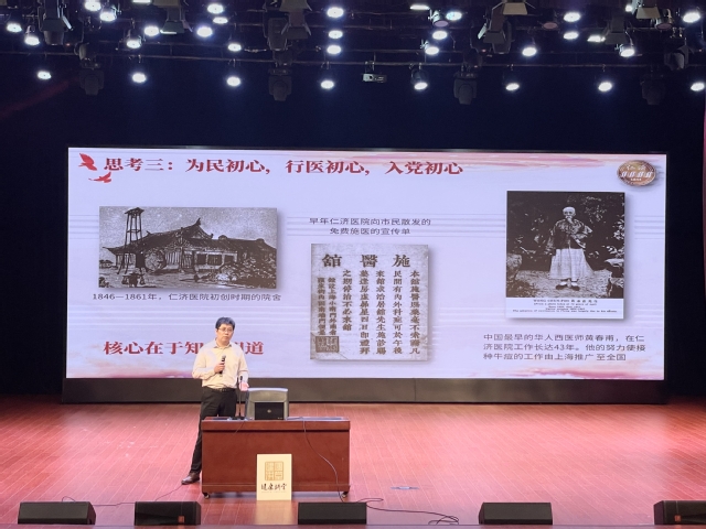 为增进新生对党的了解和认识,激发新生入党的积极性,太阳成tyc122cc于10月9日下午在北苑400人报告厅举行了2021级新生入党启蒙教育讲座。本次讲座特别邀请仁济医院秦骏医生主讲,党总支副书记罗瑾琰、新生辅导员以及2021级全体本科新生参加了讲座,活动由党建组织员邵真如主持。