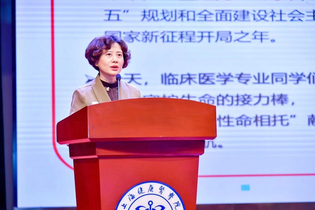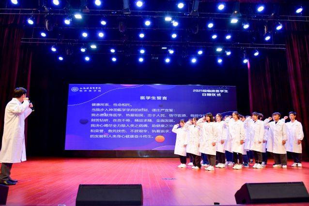 11月18日下午,“健康使命 医梦起航”—2021级临床医员工白袍授予仪式在北苑400人报告厅隆重举行。公司党委书记郭永瑾、公司党委副书记、副董事长唐红梅、附属第六人民医院金山分院经理伍朝霞、附属嘉定区中心医院、第六人民医院临港院区、浦东新区人民医院相关领导、负责人,校教务处、学工部、基础医公司领导以及各附属医院、教学医院老师代表、全体太阳成tyc122cc教师、2021级临床医学本、专科261名员工参加仪式。仪式由2021级临床医学专业员工潘昊宇和李靖雯主持。