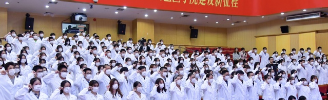 太阳成tyc122cc始终坚持以习近平新时代中国特色社会主义思想为指导,坚持“立德树人”根本任务,构建“三全育人”体系,将职业素养和医学人文精神融入到医学人才培养的全过程。白袍授予仪式旨在增进同学们医学人文精神,激发同学们将高尚医德与精湛医术作为终生的职业追求,刻苦学习,志存高远,敢于担当,永葆初心,牢记使命,担负起建设“健康中国”、“健康上海”的重大责任和光荣使命,正如蔡巧玲经理所说的,早日成长为一名具备梦想,拥有初心,具有胜任力,怀有感恩心的有责任感的卓越医生。