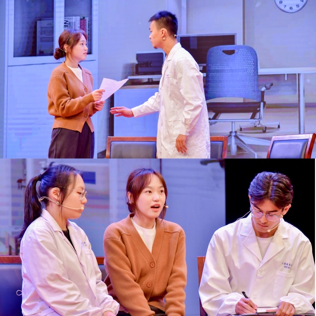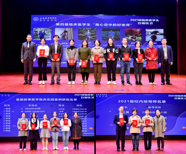 会上,还对第四届临床医员工“我心目中的好老师”和首届叙事医学临床实践获奖同学进行了表彰,对2021级班导师进行了颁证并献上鲜花。同学们还将自己的优秀作品改编成叙事医学舞台剧——《最后的绽放》,龚琪芸、苏巴提.博萨克等同学为医员工们进行了倾情演绎。
