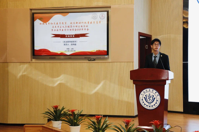 2019级临床医学本科专业的张玮益同学作为获奖代表在大会上做了交流报告。他表示,这篇叙事医学故事源于在早临床实践课程中在病房里的所见所感。通过学习,他深知基础医学的成熟本是建立在千万人的生命之上,一台成功的手术背后,汇集着无数医师的经验和一次次的试错。但这不应该成为我们渐渐变得冷酷的理由。即便知道今后很可能会遭遇一次次的医患纠纷,他仍不想遗忘当初选择医学的初心,不会遗忘当初身着白袍立下的誓言。