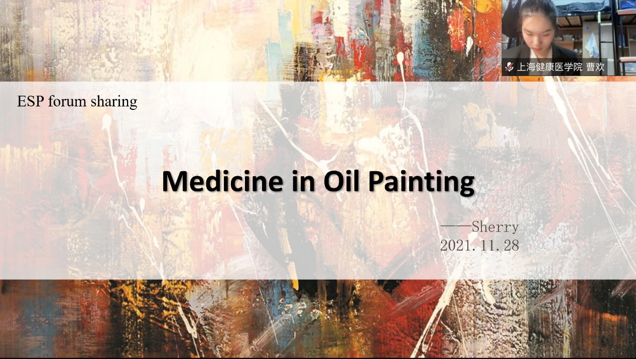 曹欢同学角度新颖,从艺术角度展示了油画与医学的的巧妙联系,在油画中品味医学的魅力。